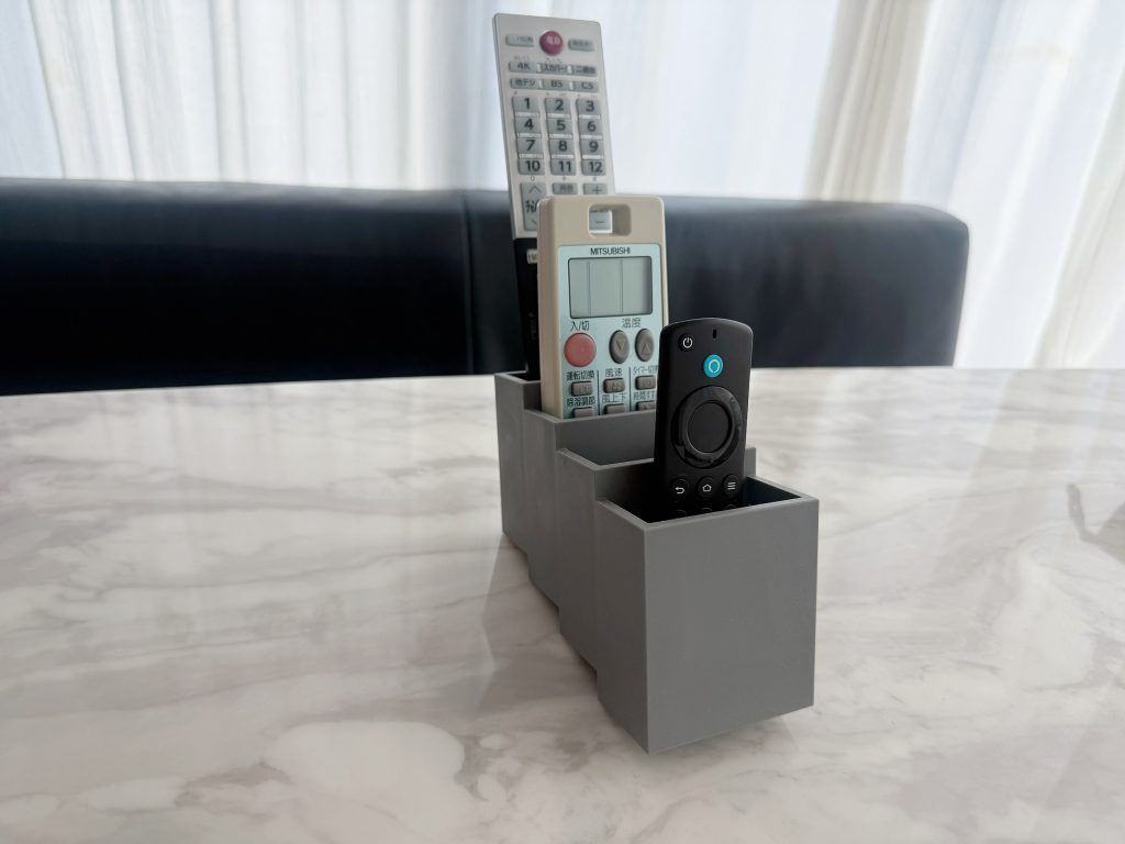 我が家では、「+d 」のリモココというリモコン入れを使っています。このリモコン入れは場所を取らず、スタイリッシュなデザインが好きです。