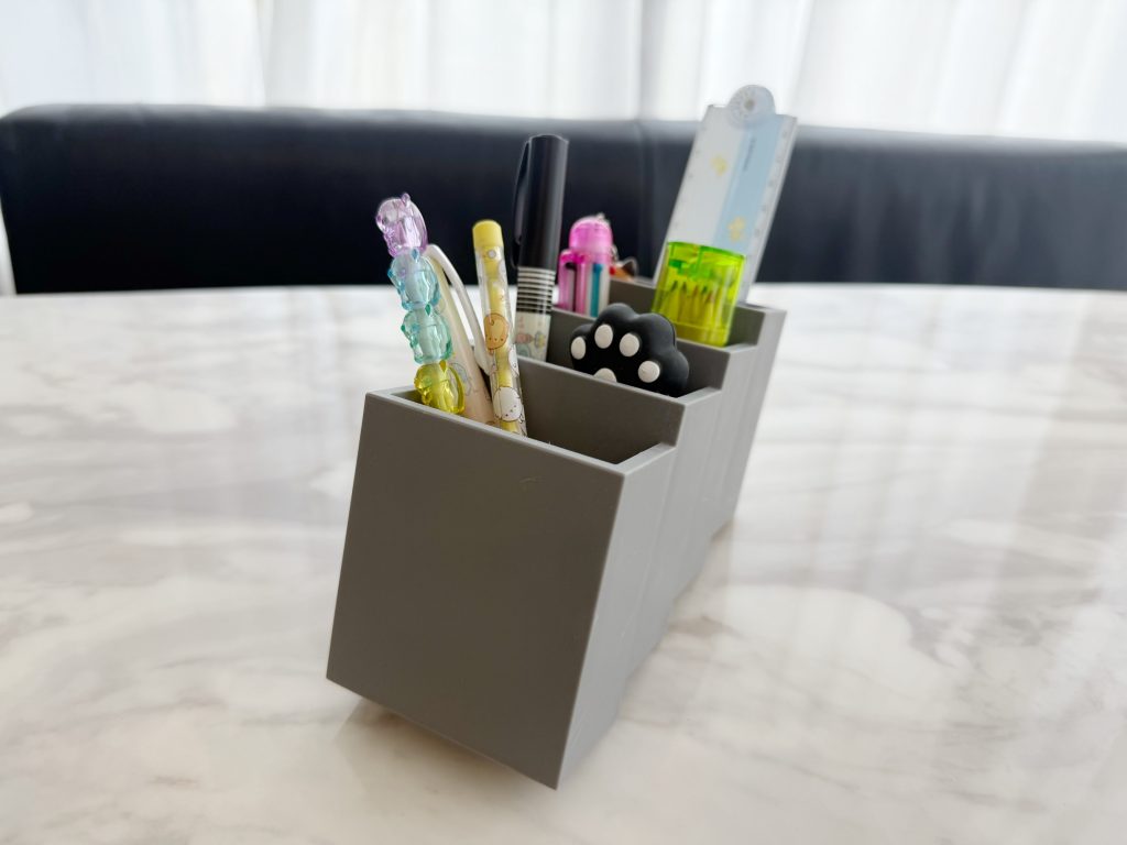 ペンスタンドにももちろん使えます。探しやすいのも嬉しいポイント。4つの収納スペースがあるので、分類しながら収納しても便利に使えそうですね。