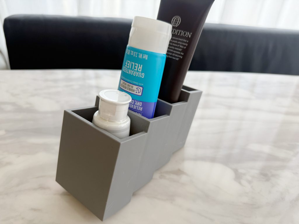 チューブタイプのモノの収納もできます。歯磨き粉やクレンジングなど、洗面所で使うモノも立てて収納可能。