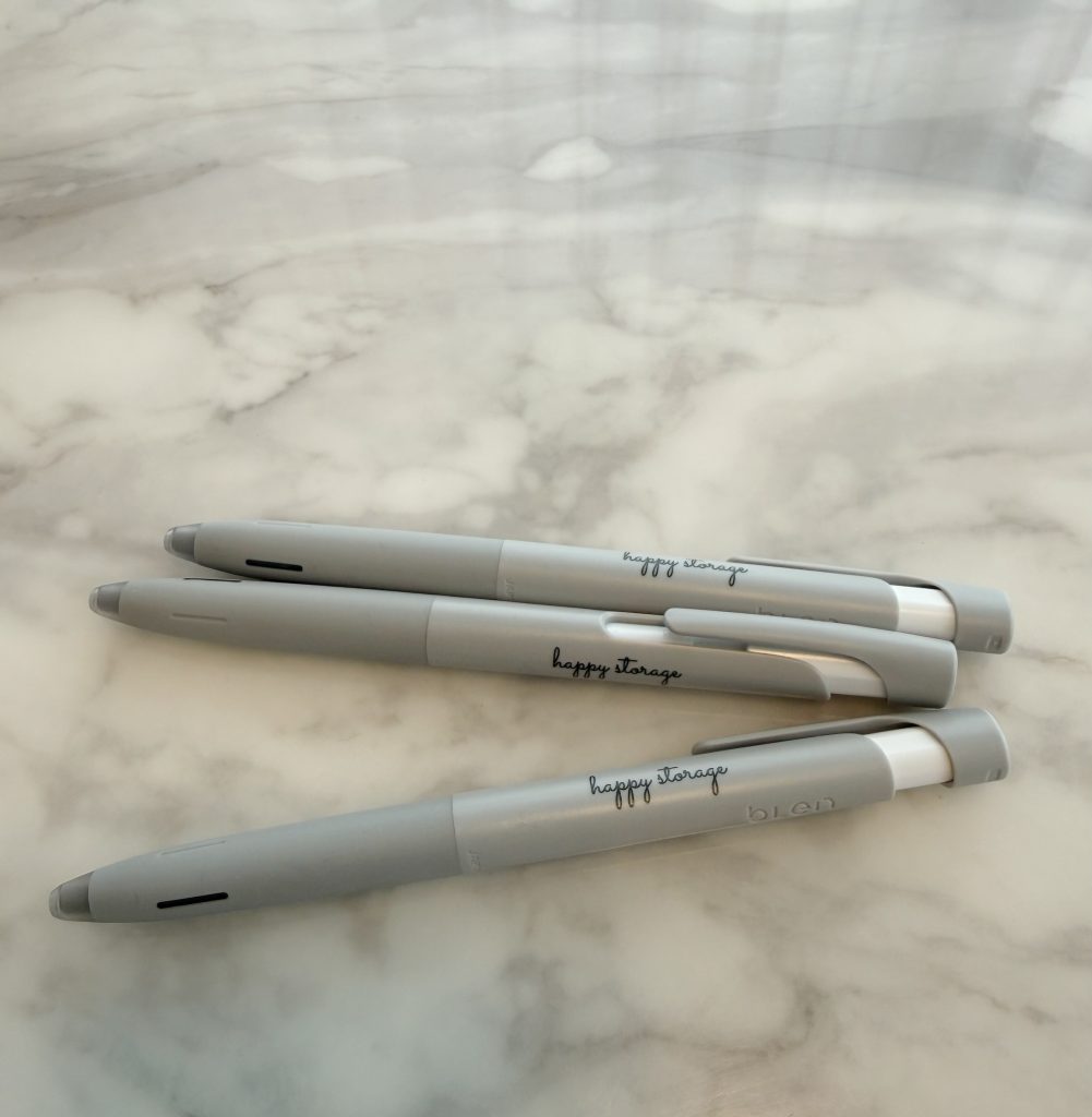 今回、名入れをしてくれるショップさんを見つけたので、happy storageのノベルティをbLenのボールペンに変更しました。