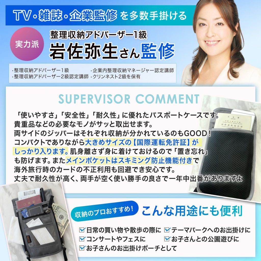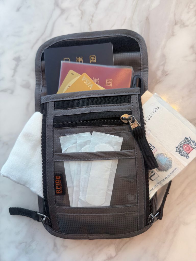 実際にこれらの機能が入ったパスポートポーチを使っています!大切なモノを肌身離さず身に着けられながら、一つのポーチにまとめられて便利です。